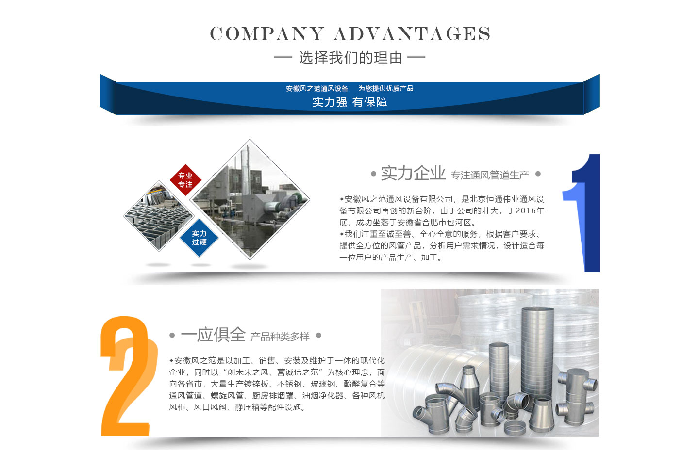 安徽風之范通風設備有限公司,是北京恒通偉業(yè)通風設備有限公司再創(chuàng)的新臺階,多年來,公司員工憑著“誠信敬業(yè)、團結(jié)拼搏、勇于開拓、務實進取”的企業(yè)精神,先后承接了多項重點工程項目,使公司健康穩(wěn)步發(fā)展。現(xiàn)由于公司的壯大,業(yè)務的拓展,又于2016年底,成功坐落于安徽省合肥市包河區(qū)。本公司生產(chǎn)設備精良,技術(shù)力量雄厚,質(zhì)保體系完善!讓用戶體驗到,貼心的服務,無憂的售后!風之范是以加工、銷售、安裝及維護于一體的現(xiàn)代化企業(yè),同時以“創(chuàng)未來之風、營誠信之范”為核心理念,面向全國各省市,大量生產(chǎn)鍍鋅板、不銹鋼、玻璃鋼、酚醛復合等通風管道、螺旋風管、廚房排煙罩、油煙凈化器、各種風機風柜、風口風閥、靜壓箱等配件設施。廣泛承接商場、工廠、酒店、寫字樓、地下室等,消防排煙工程、除塵凈化工程、室內(nèi)通風工程、暖通空調(diào)工程、廚房排煙凈化工程。我們力求上進,追求,歡迎各界人士技術(shù)指導,經(jīng)濟合作,共創(chuàng)美好明天!